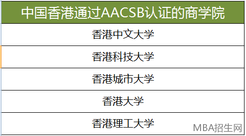 中國各地區(qū)具有AACSB認證的院校如下: