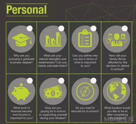 攻讀商學院可能對你的個人生活和發展產生重要的影響,比如性格發展、時間分配、財務狀況甚至是家庭等各個方面。所以,從個人發展的角度來講,你需要仔細思考以下8個問題: