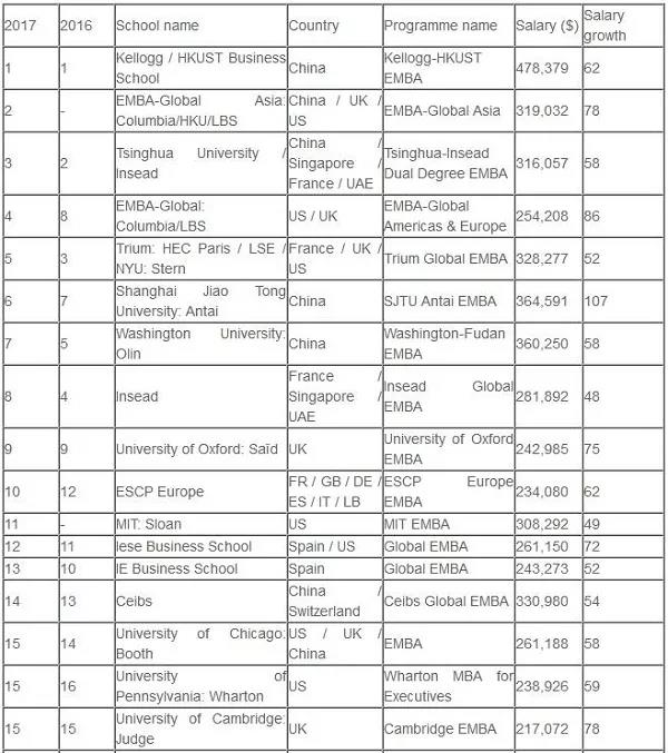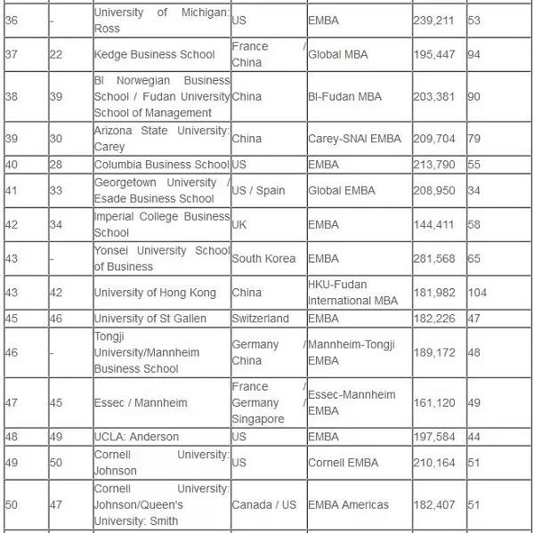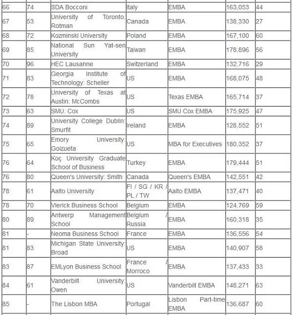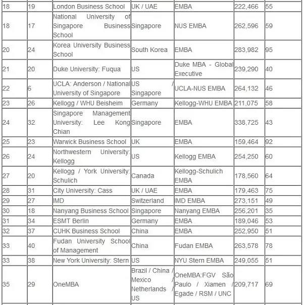 (全球EMBA百強名單)