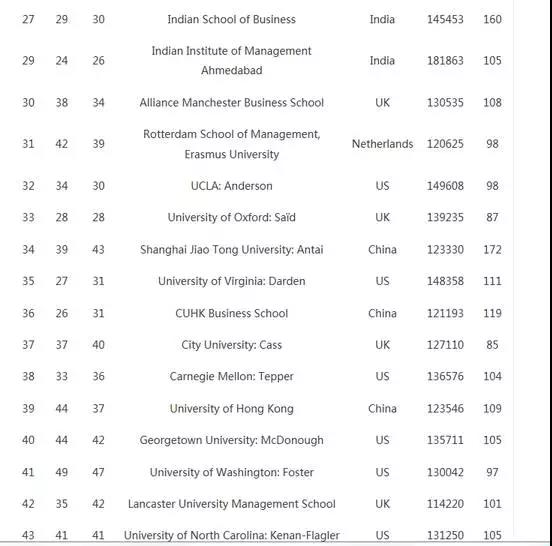 先來看幾張圖,這是金融時報(Financial Times)2017年全球商學院MBA排名!公布的指標包括畢業起薪,薪水漲幅,貨幣價值,職業發展,校友推薦等。