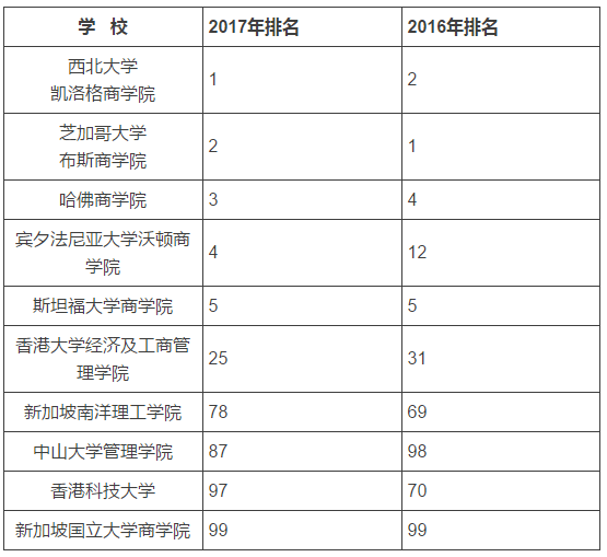 2017年全球MBA排行榜:港大連續第八年奪得亞洲第一 文  /MBA招生網2017-10-31 10:00:59