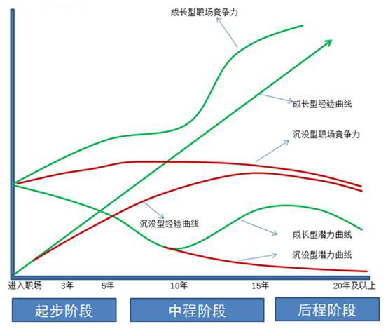 如果在此之前你不能保持自己的職場競爭力曲線向良性的方向發展,職場的后半場將會變得越來越艱難,尤其遇到大的環境變革等,抗風險能力很弱,很容易被職場拋棄!