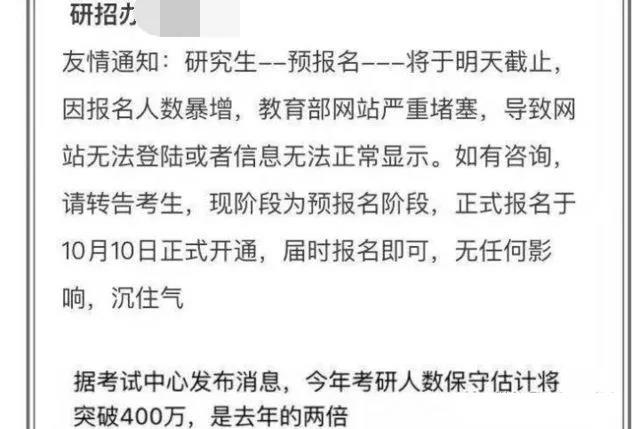 歷經九九八十一難以及四天的折磨,終于預報名結束,可以放寬心了。然并卵,一條消息迅速出現在朋友圈、QQ空間、微博、QQ微信群組以及我們所有有可能跟考研沾邊的地方……