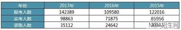 從近三年招錄人數分析,報考人數大致以2萬左右遞增,實考人數緊跟上升。報考熱度可謂是非常高了。從報考趨勢可以看出,報考人數逐年上漲,MBA等管理類聯考報考項目熱度不減。
