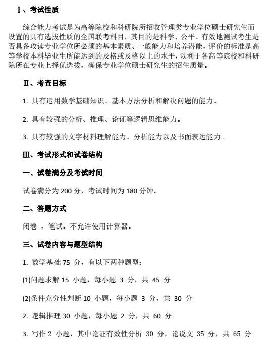 每年參加MBA聯考的考生都非常關注每年8、9月份發布的MBA考試大綱,針對馬上到來的2018年MBA考試,大綱已經公布了,同時也就意味著MBA聯考也要進入沖刺階段了。那么各位考生,我們就一起來一下最新的綜合能力考試大綱是怎樣的吧。