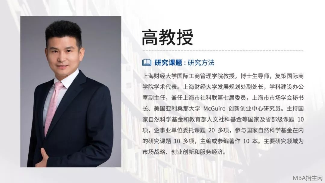 美國亞利桑那大學McGuire創(chuàng)新創(chuàng)業(yè)中心研究員,上海交通大學DBA,清華大學總裁班和國際MBA,上海財經(jīng)大學MBA和總裁班授課教授。