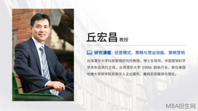丘教授,新竹清華大學科技管理研究所教授、博導,管理學院副院長,EMBA執(zhí)行長。擔任中國營銷科學學術(shù)年會執(zhí)行主席(北京),獲新竹清華大學教師學術(shù)卓越獎、新竹清華大學科技管理學院杰出教學獎。除教學外,曾多次對多家知名企業(yè),如太古可口可樂、中國電信、北京金融街集團、招商銀行、浦發(fā)銀行、東方航空、太平洋保險、強生公司、東風汽車、東江環(huán)保、天河城百貨、臺積電、臺灣銀行、法國巴黎保險集團等,提供咨詢和培訓服務(wù)。教授成就: