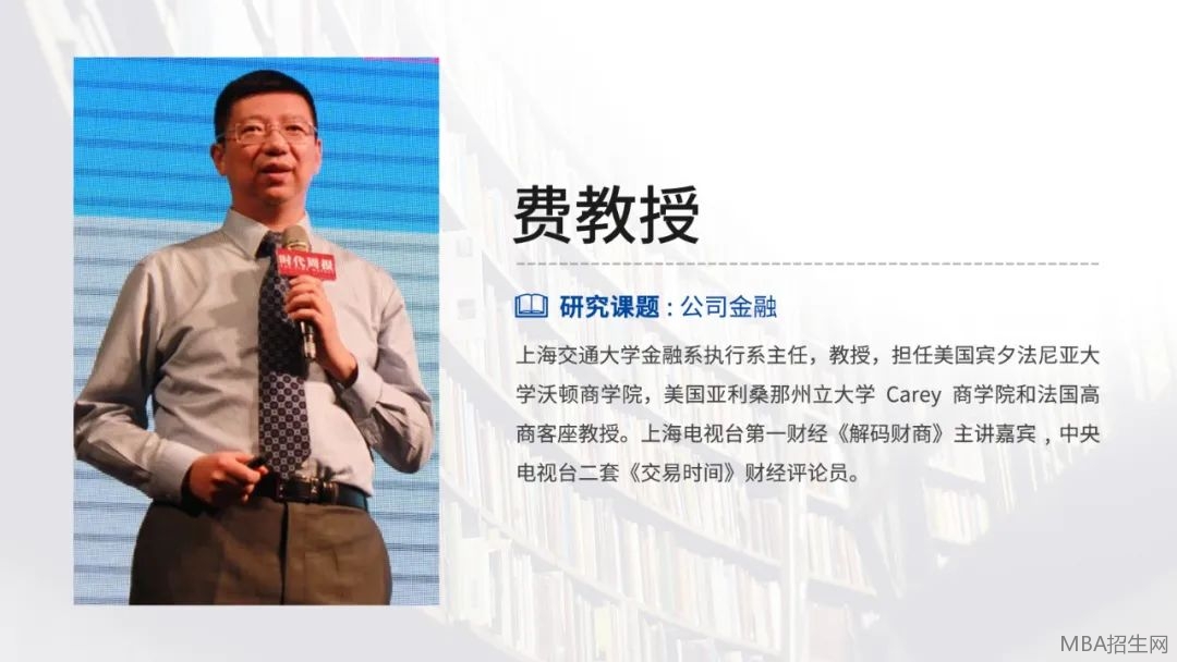上海交通大學安泰經濟與管理學院EMBA課程教授,金融系副教授,創新創業EMBA項目創業導師,2006-2009年曾任上海交通大學安泰經濟與管理學院金融系執行副系主任。主要專業領域為公司金融。學術經歷: