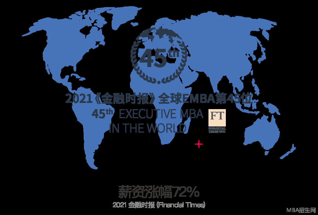 2021年度《金融時報》最佳工商管理碩士 (在職MBA) 排名全球45位,蟬聯中國前15強,穩居世界前列。學員畢業3年后的平均薪資漲幅高達72%。