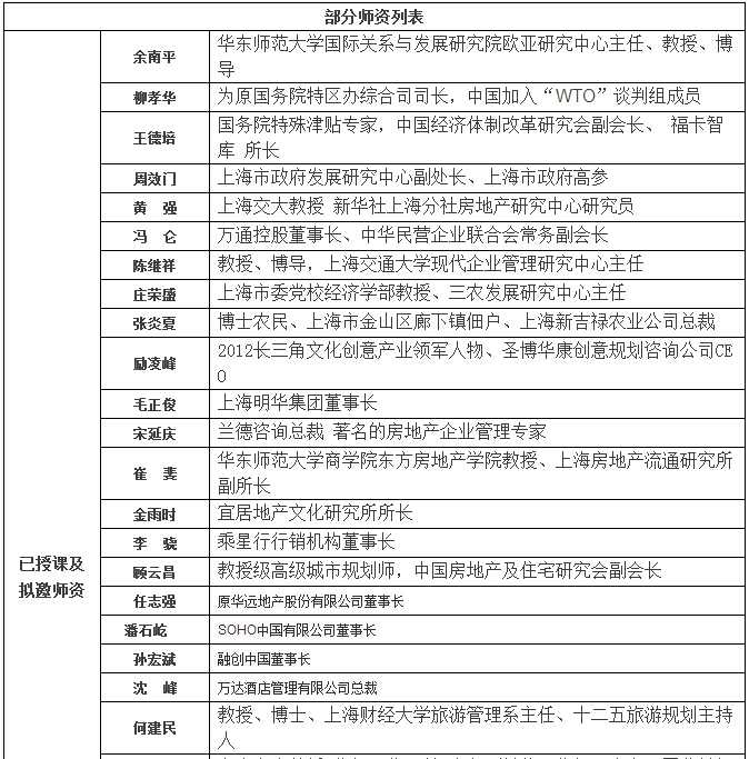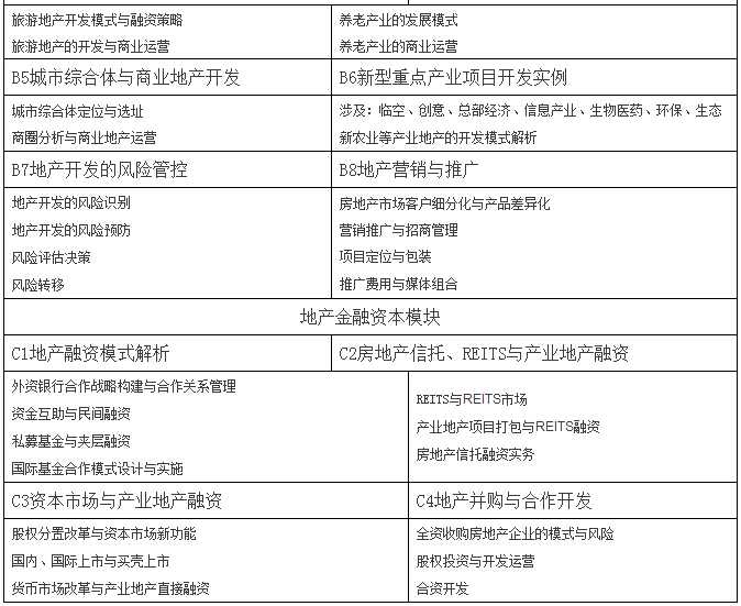 上海交通大學憑借產、學、研一體化的優勢,以交大為平臺匯聚了著名經濟學家、房地產研究和實戰專家以及金融基金領域資深人士,借鑒國外地產金融發展經驗,結合中國宏觀政策與市場特點為有志于地產開發和金融運作的人士開設上海交通大學地產與金融總裁研修班。