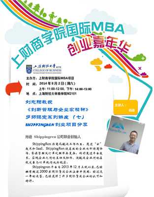 8月2日:上海財經大學國際MBA創業嘉年華系列講座(七)