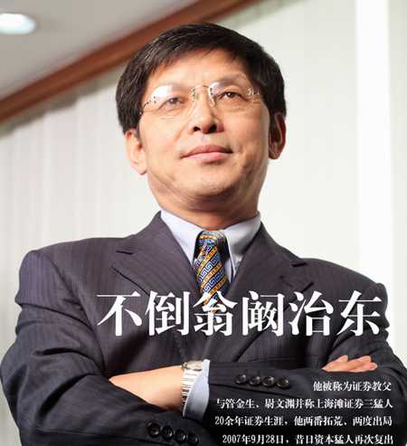 人稱“中國證券教父”,創立申銀證券公司,締造了許多中國證券金融領域的“第一”。創立深創投集團,闞治東先生在深創投集團期間領導的創業投資項目已有34家在國內外證券交易所上市,并出任南方證券股份有限公司總裁等職務。2005年,創立東方匯富創業投資管理有限公司,并擔任董事長,投資了包括華銳風電、上海新生源等多個優質項目,目前總投資增值已經超過25.64倍。投資的多個項目預計陸續登陸國內主板、中小板,香港主板,美國納斯達克等。