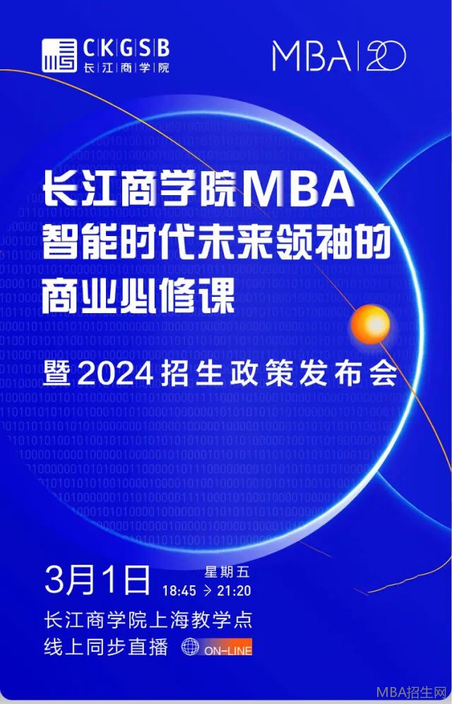 3月1日 重磅發(fā)布!長江商學院MBA公開課暨2024招生政策發(fā)布會