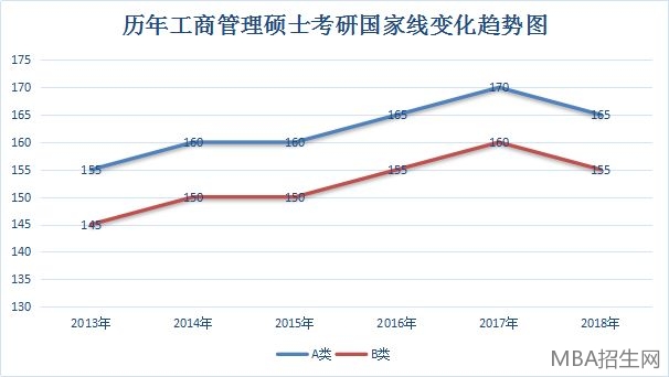 B類院校參照國家B線標準,2017年mba復試線為160分,英語37分,綜合74分。