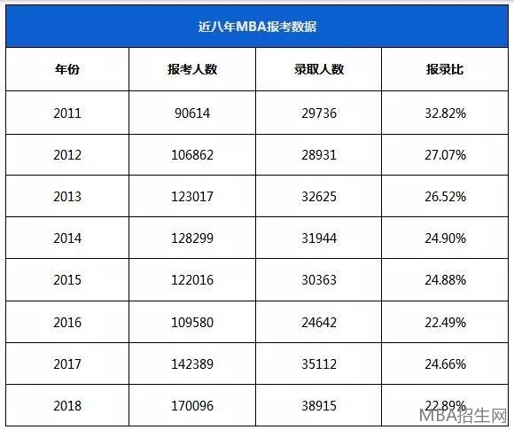 近八年MBA的報考數據
