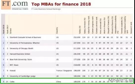2018年5月7日,英國《金融時報》(簡稱FT)發(fā)布2018年度FT全球金融MBA(Top MBAs for Finance)排行榜,此次排名根據(jù)MBA畢業(yè)生在金融行業(yè)的從業(yè)比例、薪資狀況、職業(yè)發(fā)展和學院的學術能力等指標情況進行了評比。中國地區(qū)六所商學院躍居前五十強。