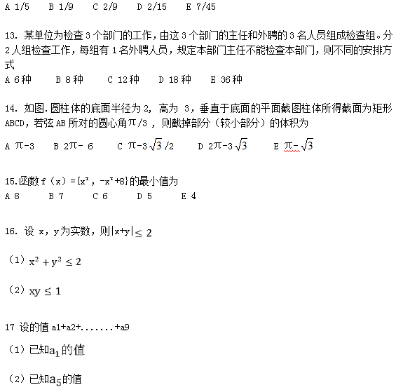 三、邏輯推理:第26~55小題,每小題2分,共60分。下列每題給出的A、B、C、D、E五個選項中,只有一項是符合試題要求的。請在答題卡上將所選項的字母涂黑。